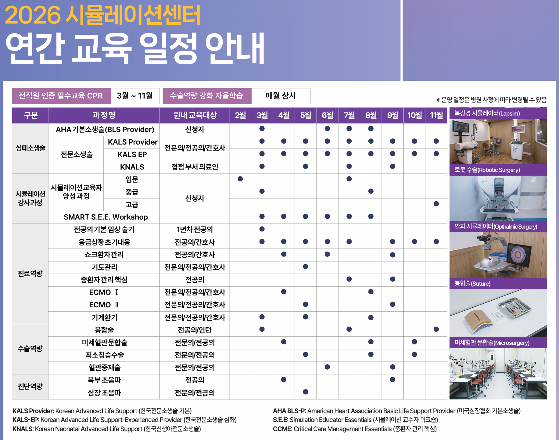 - 시뮬레이터 및 최신 의료장비 도입을 통한 안전한 교육환경 구축